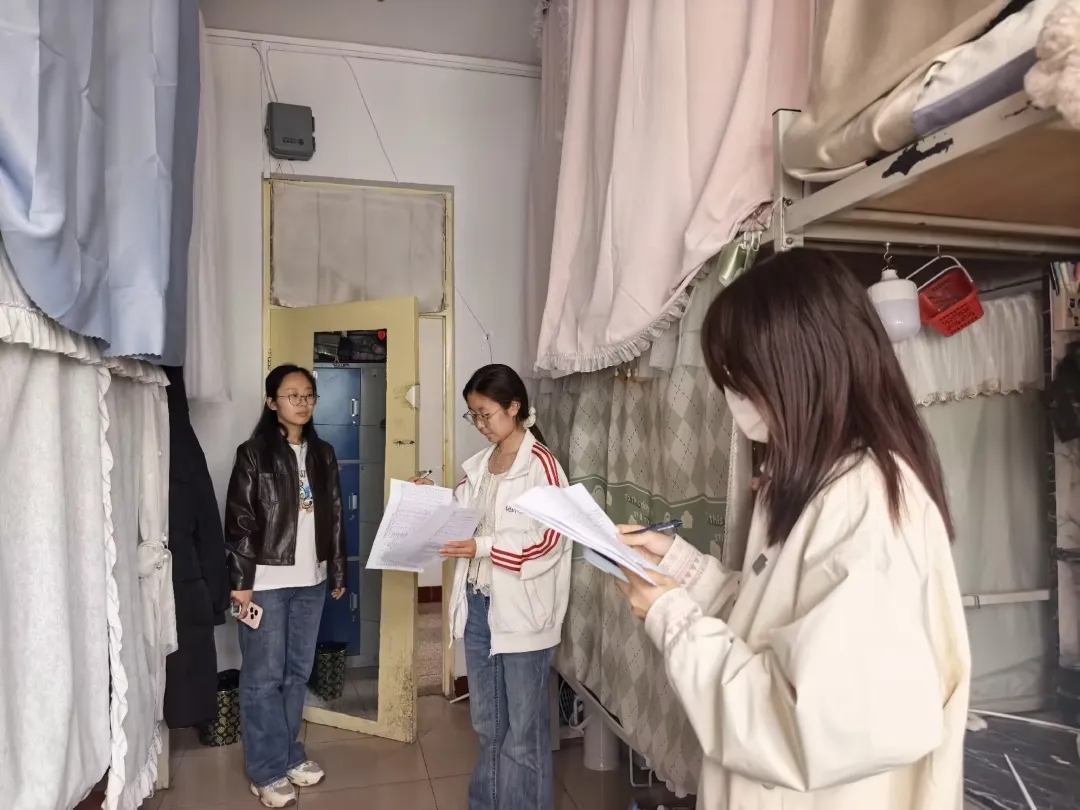 其中,张钰瑶在检查女生宿舍时指出,宿舍是同学们共同的生活家园,希望大家养成日常整理、及时清扫的良好习惯,做到物品摆放规整、环境干净清爽,在整洁有序的环境中安心学习、舒心生活,以良好风貌展现我院学子的文明素养。此外,王哲铭强调,全体同学须严格遵守宿舍管理规定,杜绝违规电器使用,自觉维护公共区域卫生,主动清理杂物、消除卫生死角,共同营造安全、整洁、文明的住宿氛围,守好宿舍安全与卫生底线。