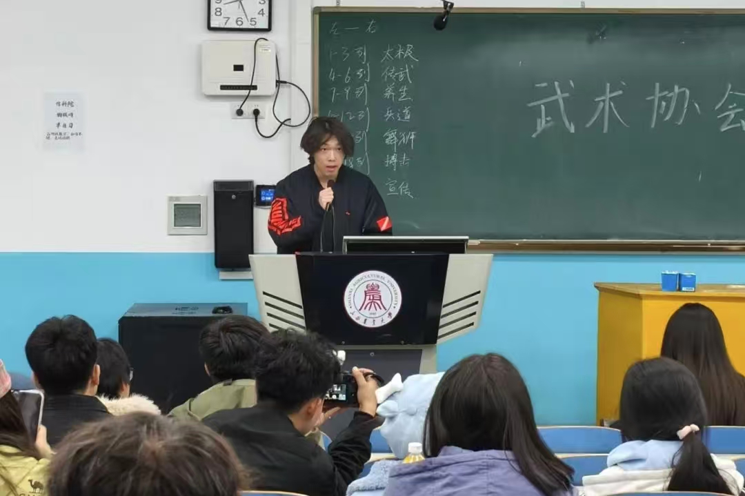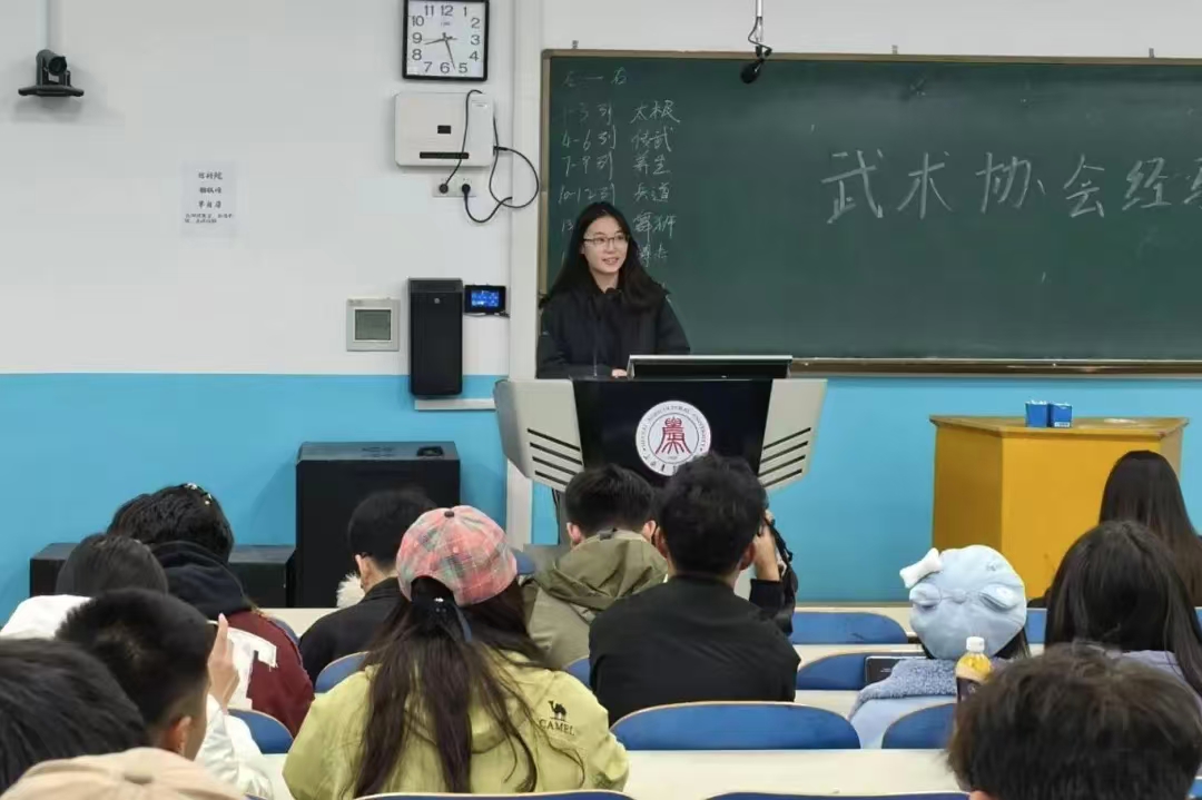 活动伊始,王培霖从武术的历史源流、主要流派及其文化内涵等方面,系统而生动地讲解了中华武术的独特魅力。通过理论阐释与动作展示相结合的方式,同学们不仅加深了对武术文化的理解,也对协会的组织架构、规章制度与发展愿景有了更清晰的认识。随后,协会各部门负责人依次介绍各部门职能与品牌活动。在互动交流环节,同学们踊跃提问,内容涵盖日常训练、活动开展及个人成长等多个方面,相关负责人一一给予细致解答,现场气氛热烈融洽。