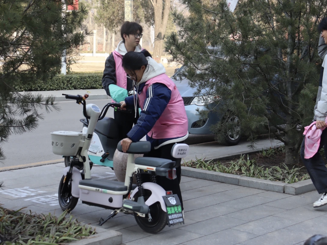 活动现场,志愿者们分工明确、行动有序。针对崇实楼周边电动车停放杂乱问题,大家逐一将车辆搬运归位,整齐摆放至指定停车区域;同时耐心劝导不规范停放的同学,引导大家自觉维护校园通行秩序与安全。从凌乱到整洁,每一辆车的规范停放,都凝聚着志愿者的责任与担当,也让“奉献、友爱、互助、进步”的志愿精神在实践中落地生根。