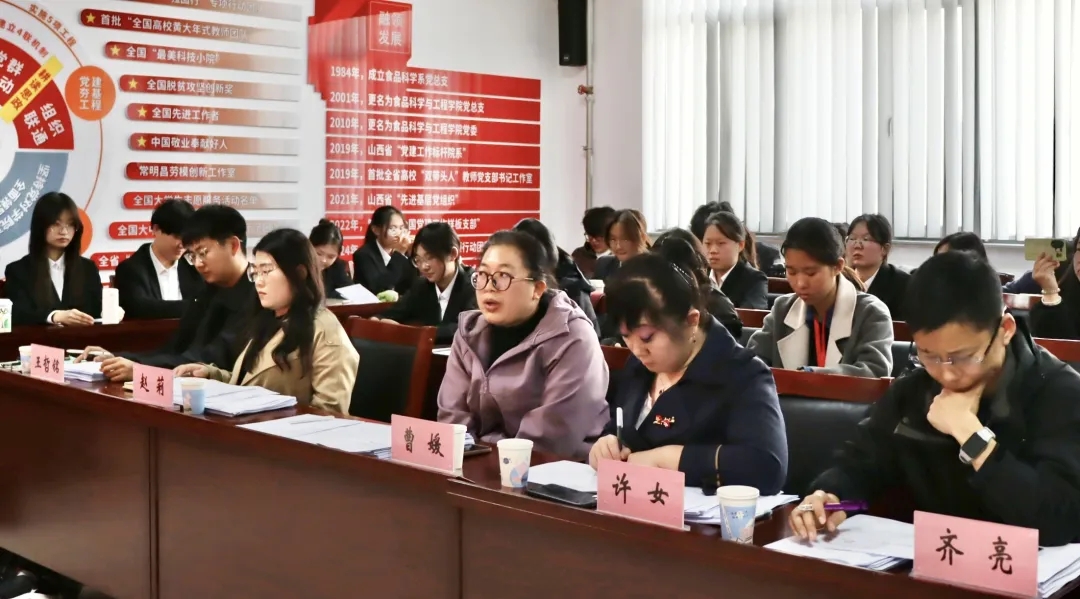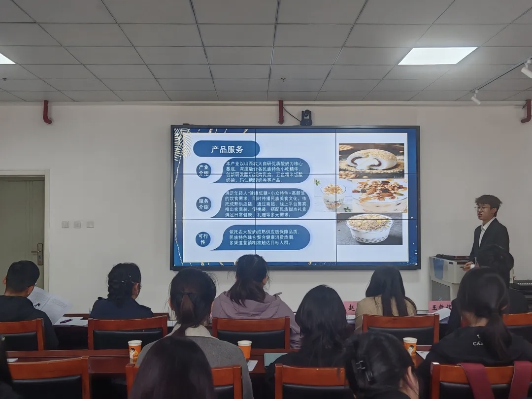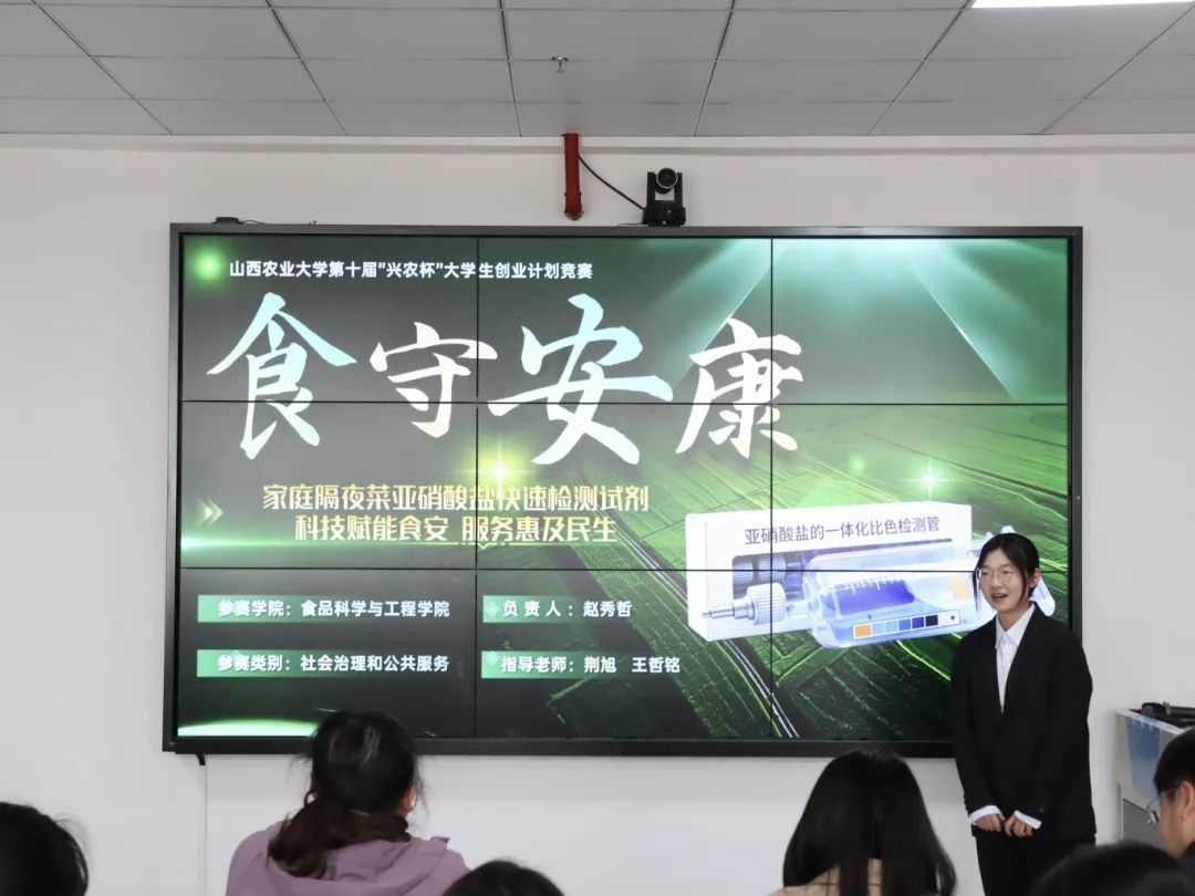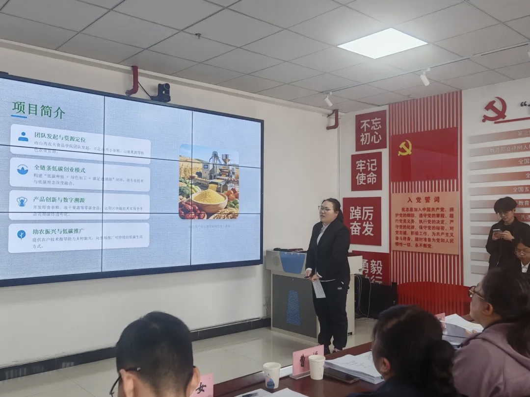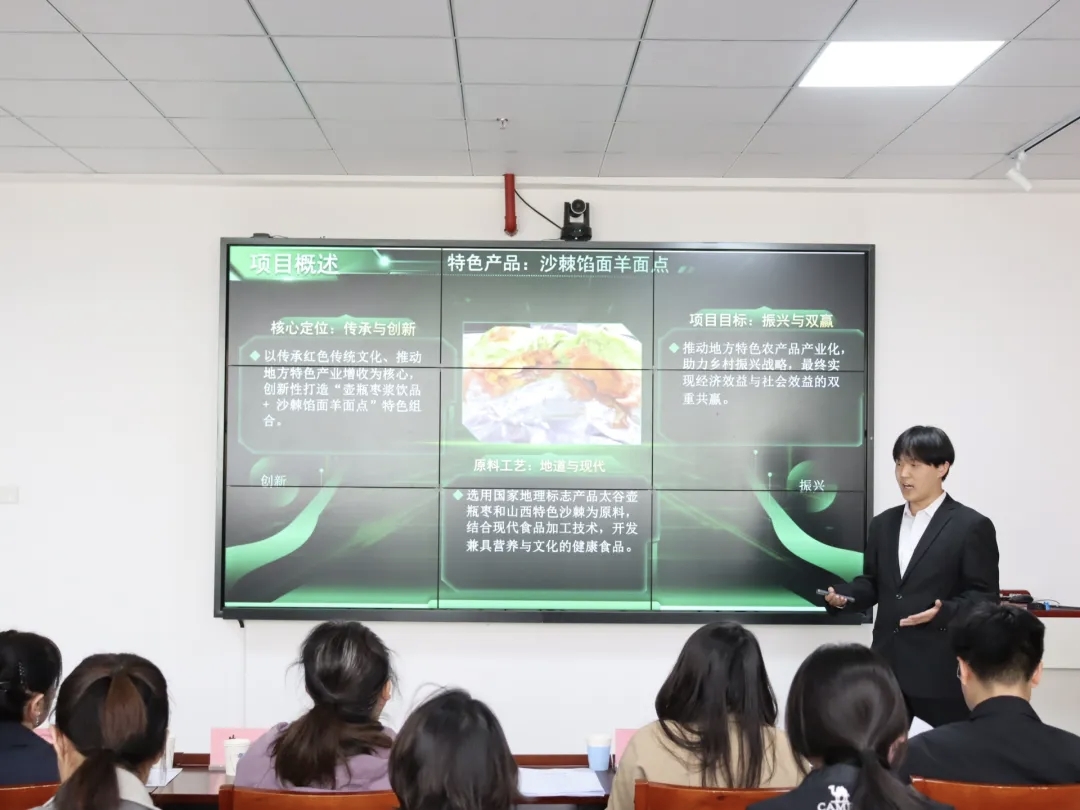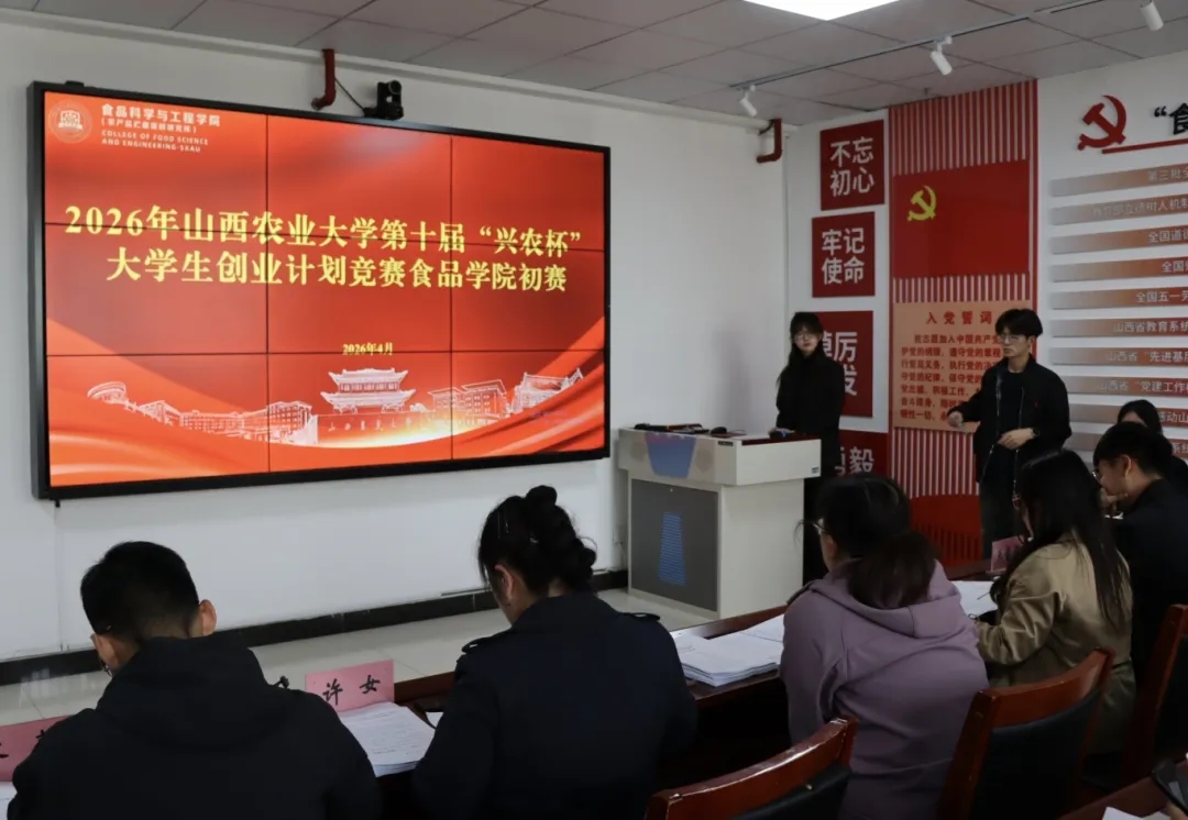 为激发学生科研创新热情,厚植强农兴农使命担当,4月3日上午,我院于崇实楼605会议室举办山西农业大学第十届“兴农杯”大学生创业计划竞赛食品学院初赛。校团委组宣部部长曹媛,我院博士生导师、食醋产业学院院长许女教授,硕士生导师赵莉副教授,分团委副书记齐亮及2025级辅导员王哲铭共同担任本次赛事的评委。各参赛团队依次登台答辩,现场组织规范、氛围热烈。