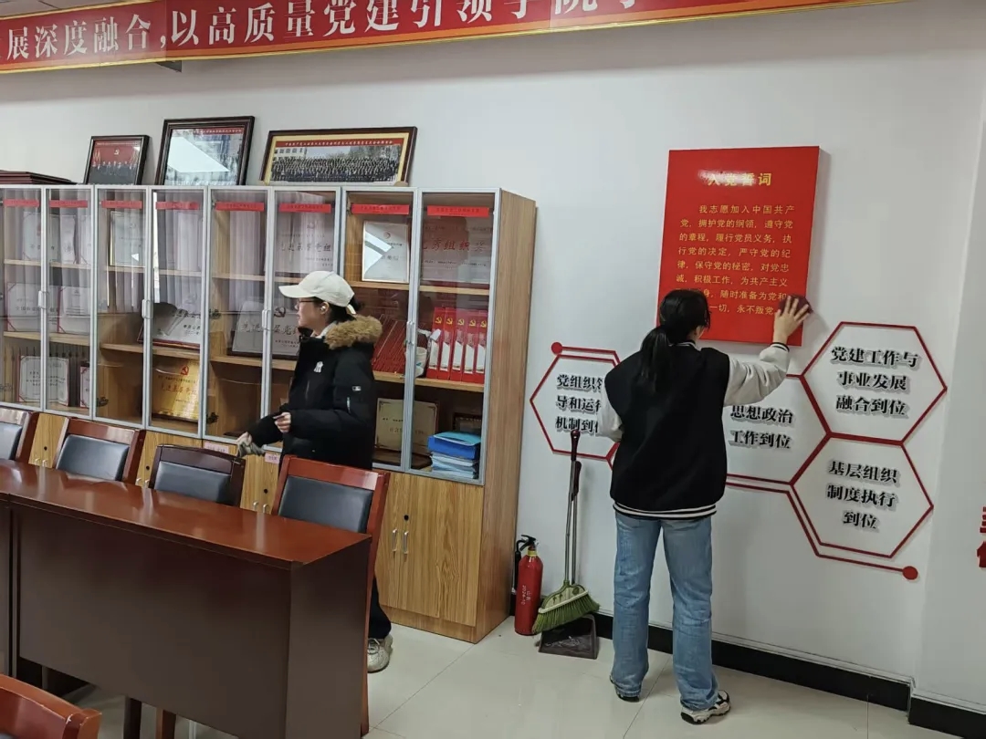 为营造整洁优美的校园环境,支部成员开展了崇实楼会议室与公共区域清扫志愿活动。大家分工协作,对605、615会议室进行了全面清洁,擦拭门窗桌椅、整理会议资料、消杀卫生死角;同时对五六楼楼道及展板进行了细致擦拭与整理,清除灰尘污渍,让宣传展板焕然一新。